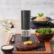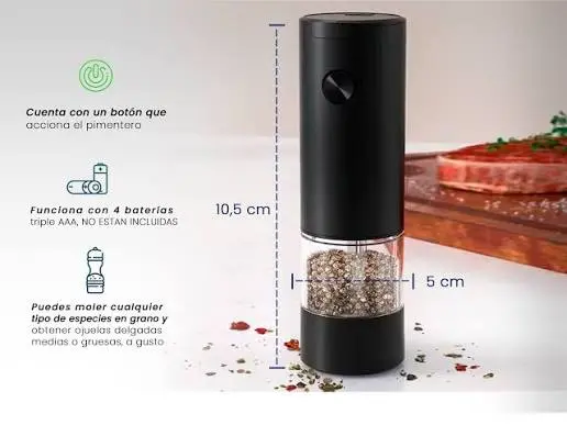 Práctico y moderno molinillo eléctrico ideal para condimentar tus comidas con un solo toque.